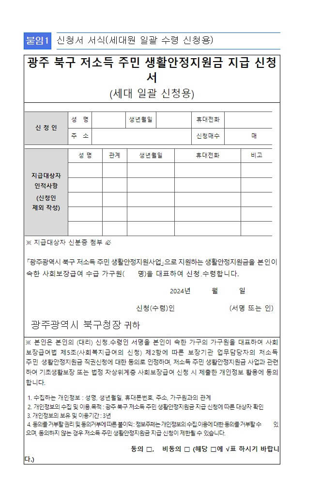 생활안전지원금 신청서 서식 다운로드