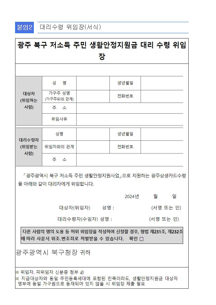 생활안정지원금 대리수령 위임장 서식 다운로드