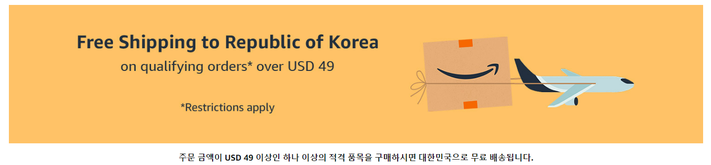이에 아마존이 새로운 시도를 하였는데 바로 49달러이상 구입하면 한국으로 무료배송을 해준다는 파격적인 내용이다.